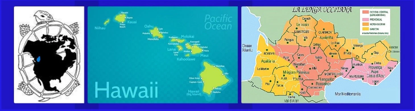 I am currently co-leading the international research project “Radical Collaborations: Transformative Eco-Cultural Practices for Collective Healing and Renewal” with Syilx scholar Bill Cohen (UBC) [link] and Hawaiian scholar Manulani Aluli Meyer (U of Hawaii) [link]. This project, funded by the Social Sciences and Humanities Research Council of Canada (SSHRC), fosters language revitalization and cultural resurgence in the Okanagan (Turtle Island), Hawaii (Oceania), and Occitania (Southern Europe) by honouring and integrating the expertise of Elders and Traditional Knowledge Keepers, as well as native and fluent speakers of Nsyilxcǝn, ʻŌlelo Hawaiʻi, and Occitan, three critically endangered languages, while forging transnational alliances between communities with diverse lived experiences and worldviews.